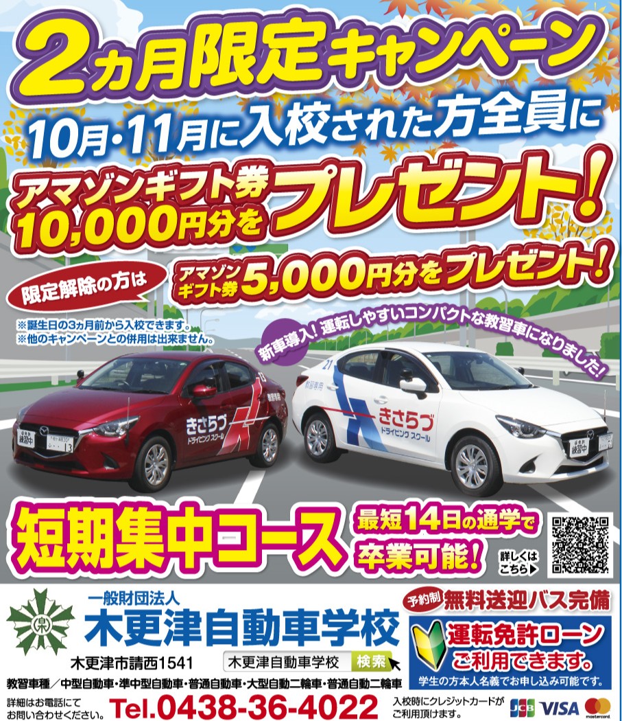 千 葉 県 / 公 安 委 員 会 指 定 一般財団法人 木更津自動車学校 教習車種 中型自動車 準中型自動車 普通自動車 大型自動二輪車 普通自動二輪車