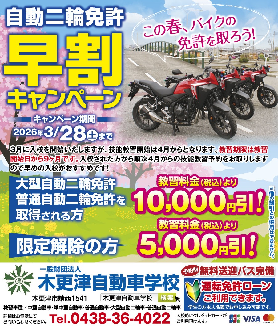 千 葉 県 / 公 安 委 員 会 指 定 一般財団法人 木更津自動車学校 教習車種 中型自動車 準中型自動車 普通自動車 大型自動二輪車 普通自動二輪車